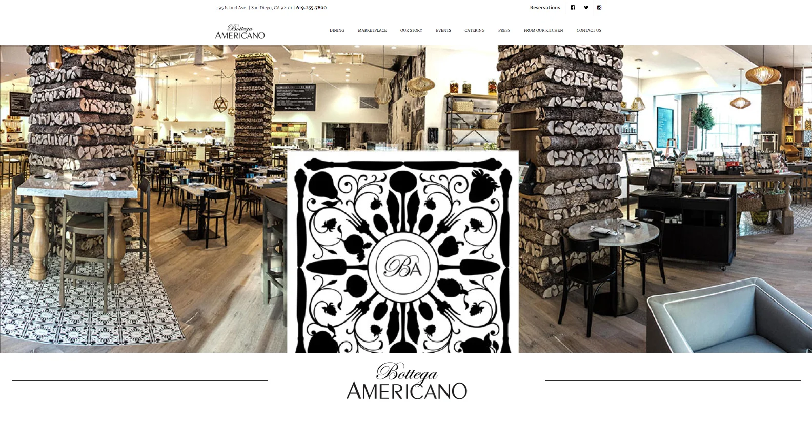 The website also makes use of photography that I curated and compiled into giant murals inside the restaurant. These romantic images of Italy create a vintage vibe that supports the brand. The fact that the photography is black-and-white also supports the color scheme.