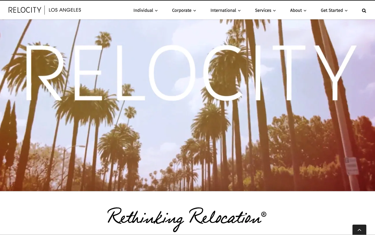 Relocity is a company that is trying to refresh the relocation business, an industry that has not evolved to meet the needs of millennials and forward-thinking, tech savvy consumers. To reach this audience, the website needed to have a distinctive urbane, modern vibe. We also wanted to avoid the feeling of a "hard-sell", opting for an approach that simply evokes an upscale, creative lifestyle, peaking curiosity. For this reason, the home page of the website begins with a bespoke video that we produced to tantalize the viewer with artsy, slightly edgy images of life in L.A. Please click the image below to visit the original website and watch this original video.